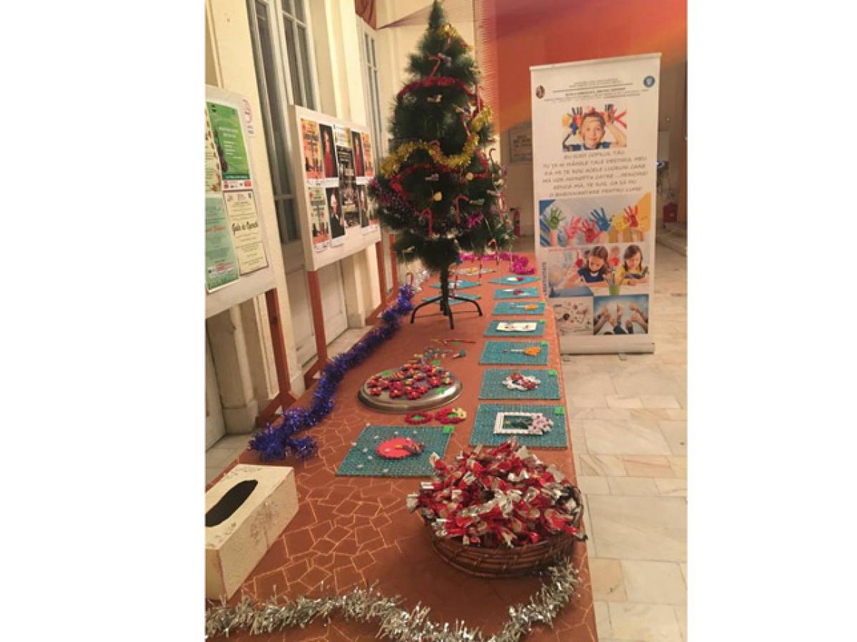 Invitaţii au putut admira şi cumpăra podoabe de Crăciun realizate de micii artişti, în cadrul expoziţiei cu vânzare organizate în holul Palatului “Lyra”.