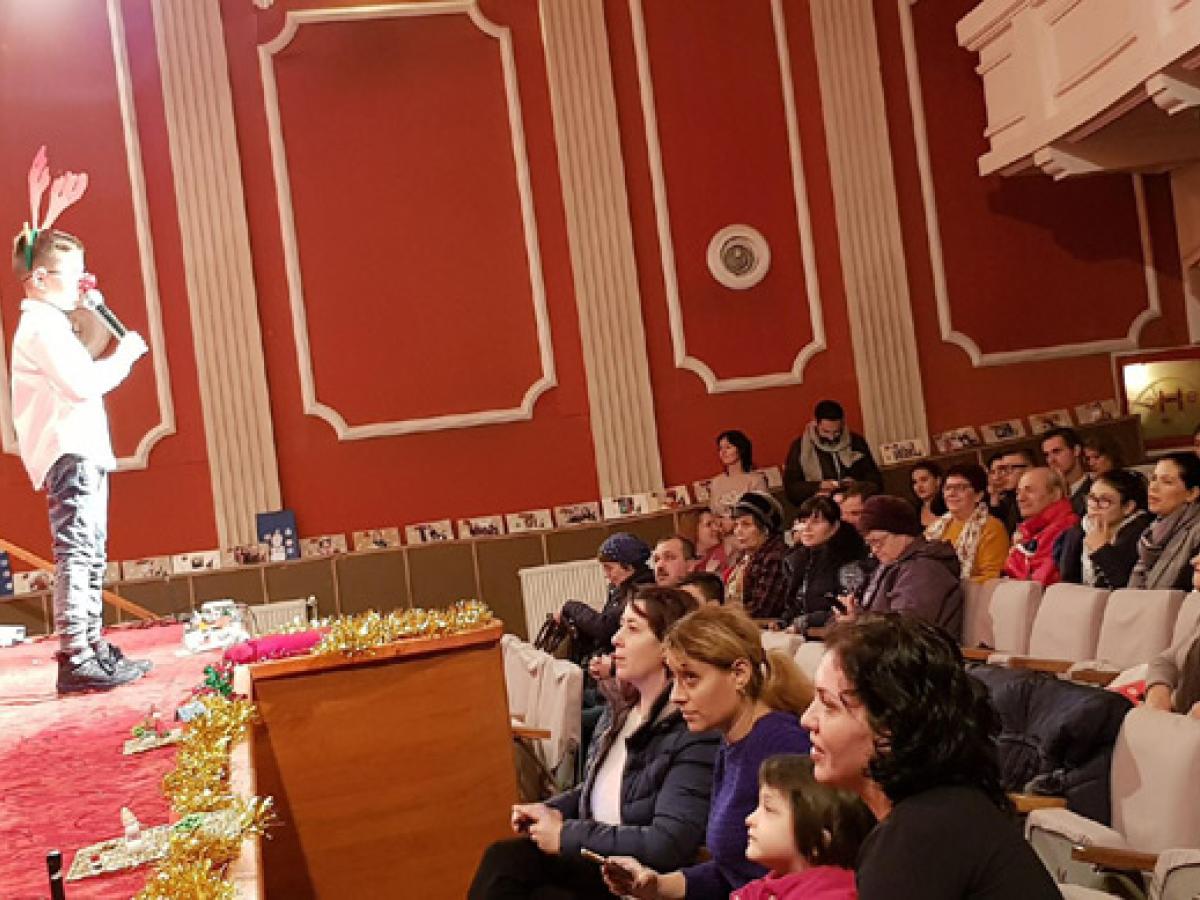 Şcoala Gimnazială “Dimitrie Cantemir” a îmbrăcat straie de sărbătoare! Miercuri, 20 decembrie, la Palatul “Lyra”, micii artişti de la clasa pregătitoarea A, sub îndrumarea doamnei profesor Cătălina Ivaşcu, au realizat o serbare de poveste, devenind pentru câteva ore ucenicii Moşului, iar toţi cei prezenţi au fost invitaţi în “În ţara lui Moş Crăciun”. Într-o atmosferă de basm, copiii au adus pe scena Filarmonicii Lyra “George Cavadia” magia Crăciunului, iar decorul a fost unul de poveste, realizat în parteneriat cu Monica Andrei de la “Quilling by Monica”.
