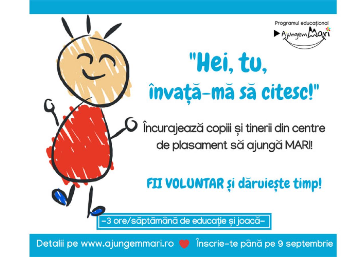 În centrele de plasament sunt mulţi copii şi adolescenţi care au nevoie de încurajare, să înveţe şi să îşi găsească drumul în viaţă. Programul educaţional “Ajungem MARI” caută până pe 9 septembrie voluntari pentru 2.000 de copii din Bucureşti şi din 24 de judeţe, printre care şi Brăila.