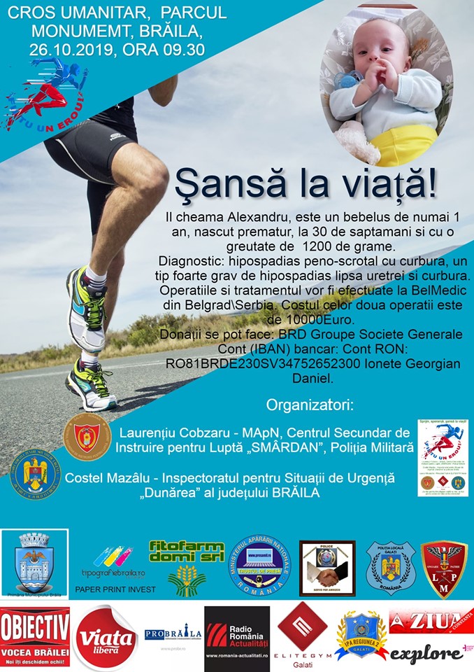 * sâmbătă, în Parcul Monument, Laurenţiu Cobzaru şi Costel Mazâlu vă invită să alergaţi pentru Alexandru-Valentin Ionete, un băieţel născut cu o malformaţie genitală gravă