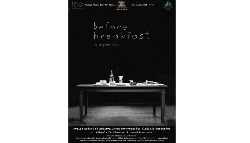 Teatrul “Maria Filotti” prezintă marţi, 29 ianuarie 2019, de la ora 19:00, spectacolul “Before Breakfast” de Eugene O'Neill la UNTEATRU Bucureşti.