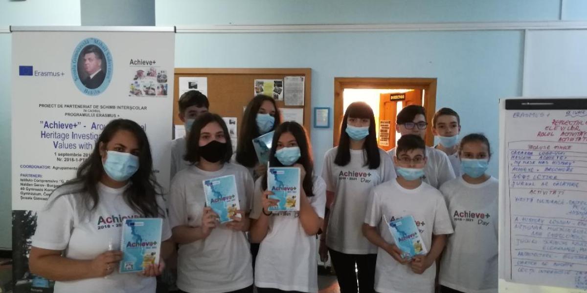 Astfel, în ciuda vicisitudinilor vremurilor, obiectivul general al proiectului, acela de a promova valorile europene, patrimoniul cultural şi obţinerea succesului educaţional, a fost atins. În cadrul acestui program de diseminare numit “Achieve+ Day” s-au organizat activităţi ce susţin acest fapt, precum prezentarea platformei eTwinning şi a realizărilor obţinute pe parcursul desfăşurarii proiectului. Este vorba despre concursul pentru stabilirea logo-ului şi a mascotei, dicţionarul multilingual, broşura monumentelor înscrise în patrimoniul cultural, legendele partenerilor din proiect - Grecia, Italia, Bulgaria, Cehia şi ale coordonatorului proiectului, Portugalia, precum şi crearea jocurilor educaţionale IT despre monumente şi personalităţi istorice utilizând platforme specifice (ex. Educaplay, Kahoot, Scratch, eLearning.apps). Printre realizările obţinute prin acest proiect se numără şi prezentarea cărţii de bucate cu reţete tradiţionale ale şcolilor participante şi prepararea chiar de “Achieve+Day” de către elevii Şcolii “Mihail Sadoveanu” a unei reteţe greceşti. Nu în ultimul rând, în cadrul evenimentului a fost susţinut un workshop despre impactul şi beneficiile proiectului la nivelul unităţii şcolare, ce a evidenţiat gradul de realizare a obiectivelor proiectului, dar şi reflecţiile elevilor asupra activităţilor şi produselor finale “Achieve+”. De asemenea, a fost prezentată expoziţia materialelor realizate în cadrul proiectului, ce a cuprins: Architecture Glossary, Monuments & Rocks/Minerals, Achieve+Brochure, Dissemination and multiplication events of the ACHIEVE+ Project results.