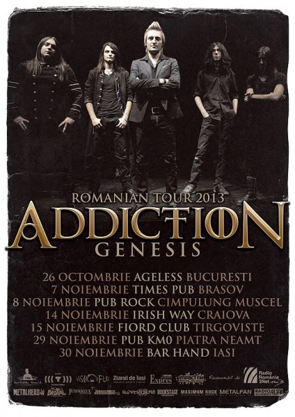 Formaţia brăileană "Addiction" şi-a început cu succes turneul naţional de promovare a albumului de debut - "Genesis". Lansarea oficială a discului a avut loc pe 26 octombrie, în club "Ageless" din Bucureşti şi, de atunci, grupul a înregistrat câteva succese demne de remarcat. Pe 7 noiembrie trupa a susţinut un show excelent la Braşov, în clubul "Times". De asemenea, în urmă cu doar două zile, formaţia a cucerit publicul craiovean în cadrul unui concert de zile mari, în club "Irish Way". Deşi scena progressive metal, gen abordat de trupa "Addiction", nu este una extrem de bine reprezentată în momentul de faţă în România, publicul prezent la evenimentele amintite a fost unul numeros şi vizibil interesat de acest segment muzical. Trupa îşi va continua turneul până la finalul lunii, ultimul show programat fiind în clubul Bar Hand, din Iaşi, pe 30 noiembrie. Foarte important de menţionat este faptul că rockerii brăileni se regăsesc în prezent printre propunerile lunii octombrie - TopRomânesc.ro. Este vorba de clasamentul lunar al melodiilor autohtone, realizat la Radio România Actualităţi, de Titus Andrei, unde "Addiction" figurează momentan pe locul al 2-lea, cu piesa "Doar până la nori". Grupul a ocupat până nu de mult prima poziţie, însă a fost surclasat recent de trupa "Iris" cu melodia "Păstrează-mă în inima ta". Chiar şi aşa, diferenţa de voturi este încă una foarte mică, iar rezultatul final se va vedea abia luna viitoare, la încheierea votului. Locul al 3-lea este deţinut în prezent de BlackStar cu piesa "O rază de soare". Ascultă "Doar până la nori", intră pe http://www.topromanesc.ro/ şi susţine cu votul tău trupa Addiction.