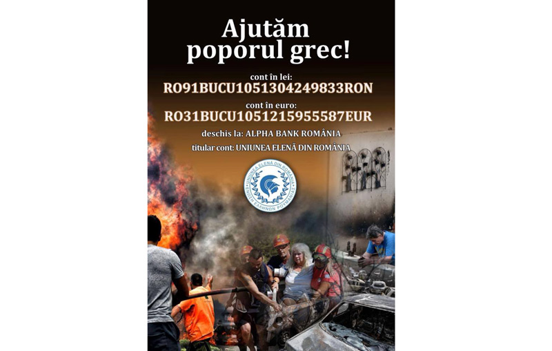 Potrivit sursei ciate, cei care doresc să doneze bani, o pot face în cele două conturi deschise la Alpha Bank România, titular cont Uniunea Elenă din România.