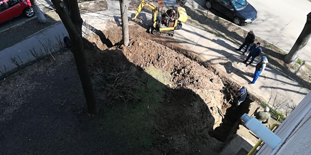 Locatarii blocului susţin, totuşi, că cei care au săpat şanţul nu păreau deloc persoane specializate să intervină asupra reţelelor de electricitate.