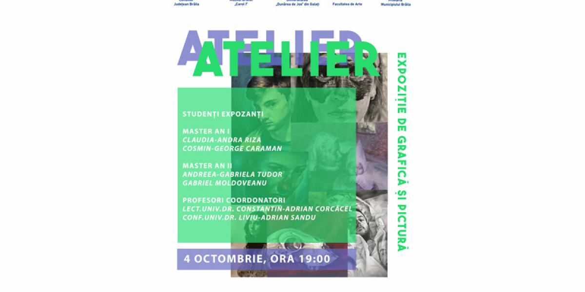 Expoziția de grafică și pictură “ATELIER” poate fi văzută până pe 29 octombrie, profesori coordonatori fiind lect. univ. dr. Constantin-Adrian Cocărcel și conf. univ. dr. Liviu-Adrian Sandu. Organizator din partea Muzeului Brăilei „Carol I”: Fatme Nistoroi, muzeograf - Secția Artă.