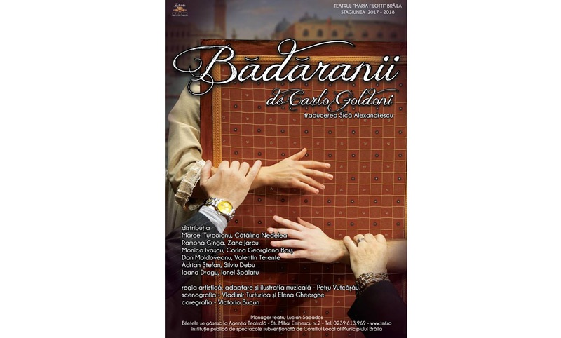 “Bădăranii”, comedie clasică în trei acte, pusă prima dată în scenă în 1760 la Teatro San Luca cu ocazia Carnavalului de la Veneţia, cu o istorie remarcabilă în teatru dar şi în cinematografie, cu un text mereu actual, este o capodoperă a dramaturgiei pusă în scenă la Teatrul “Maria Filotti” de reputatul regizor şi director al Teatrului Naţional Eugene Ionesco din Chişinău, Petru Vutcărău. Scenografia este semnată de Vladimir Turturică şi Elena Gheorghe, coregrafia aparţine Victoriei Bucun, iar distribuţia este formată din actori preţuiţi de publicul brăilean: Dan Moldoveanu, Corina Georgiana Borş, Silviu Debu, Marcel Turcoianu, Cătălina Nedelea, Ramona Gîngă, Zane Jarcu, Monica Ivaşcu, Valentin Terente şi Adrian Ştefan.