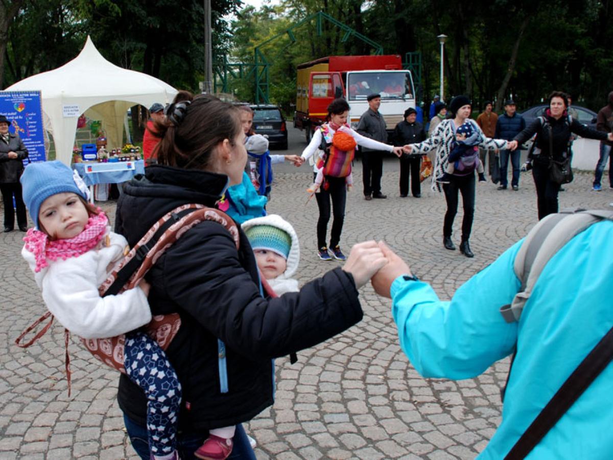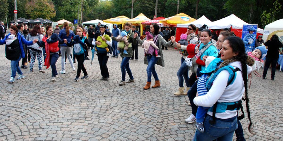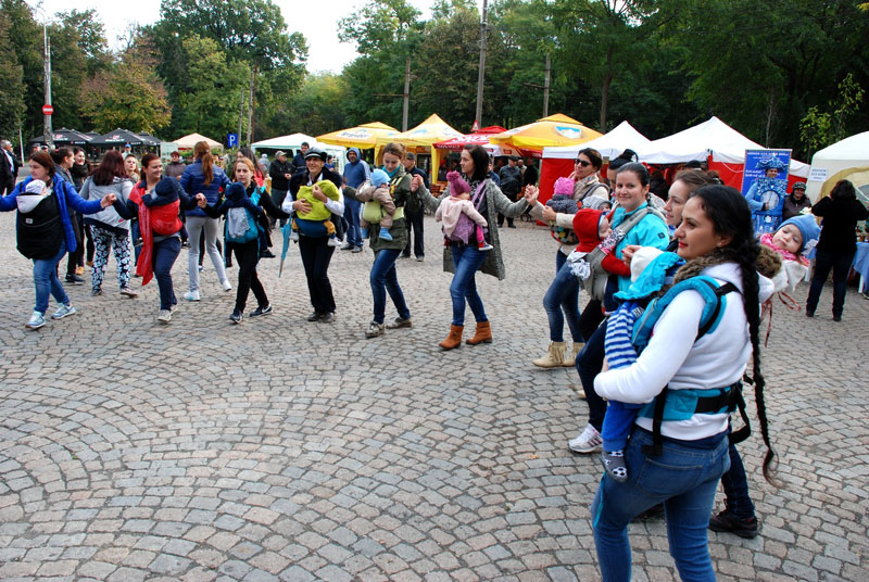 Grupul mămicilor purtăreţe a profitat de vremea frumoasă din weekendul 15 – 16 octombrie şi au venit cu micuţii lor la Festivalul Florilor de Toamnă, unde, fiindcă au avut mâinile libere, s-au prins într-o horă.