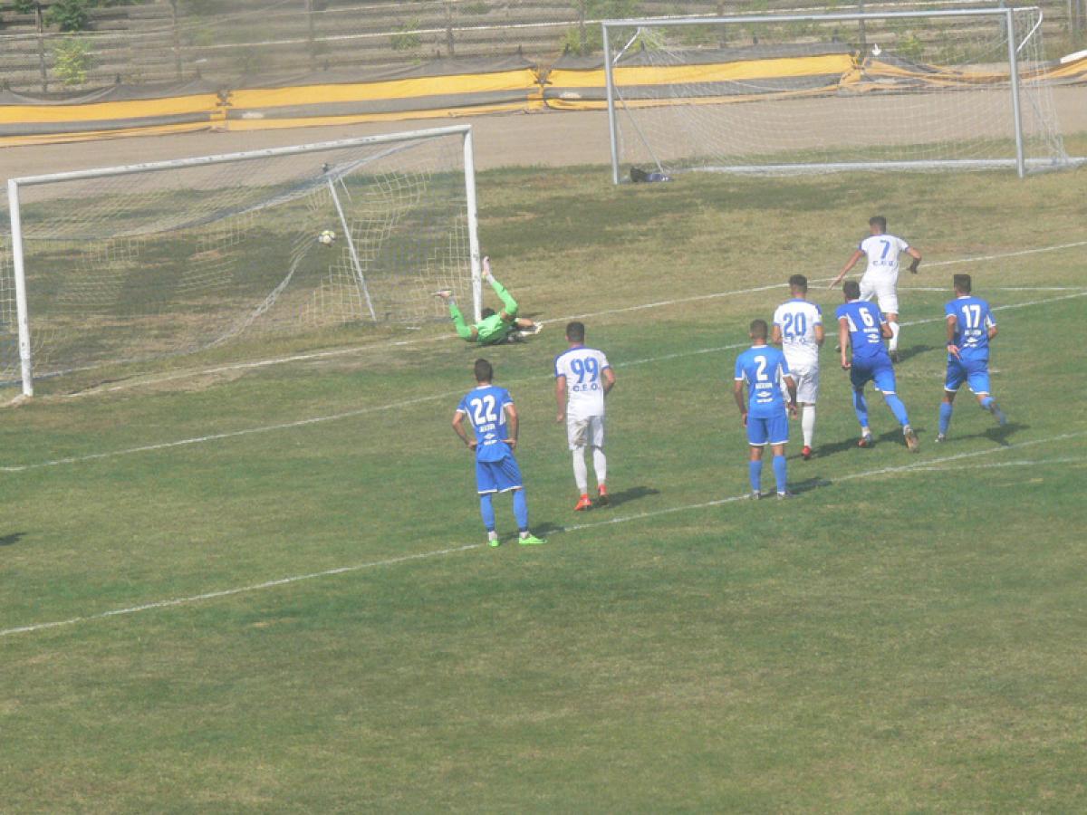 Pandurii Tg. Jiu a obţinut o lovitură liberă în minutul 17, Tudoran a şutat cu efect, dar mingea deviată de zid s-a dus în corner, tot Tudoran a centrat de la colţul terenului şi Brînzan, nemarcat, a deviat mingea, cu capul, la colţul lung, iar oaspeţii aveau avantaj pe tabelă.