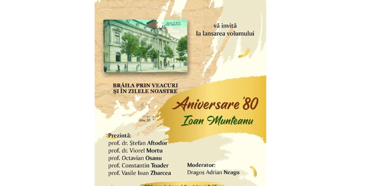 ”Evenimentul are o dublă semnificație: lansarea de carte și omagierea profesorului și scriitorului Ioan Munteanu la împlinirea vârstei de 80 de ani. Cetățean de Onoare al orașului Brăila și posesor al multor diplome și distincții, Ioan Munteanu este sărbătorit pentru îndelunga activitate profesională dedicată învățământului și promovării istoriei și culturii locale”, transmite Biblioteca Județeană printr-un comunicat de presă.