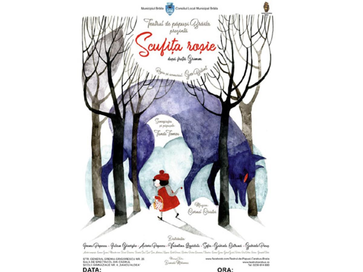 Duminică, 13 octombrie, de la ora 11.00, micii spectatori sunt aşteptaţi la una dintre cele mai îndrăgite poveşti- “Scufiţa Roşie”. Piesa de teatru se va juca în sala de manifestări din cadrul Şcolii gimnaziale nr.6 “Sandu Aldea”, situată în strada General Grigorescu, nr. 25.