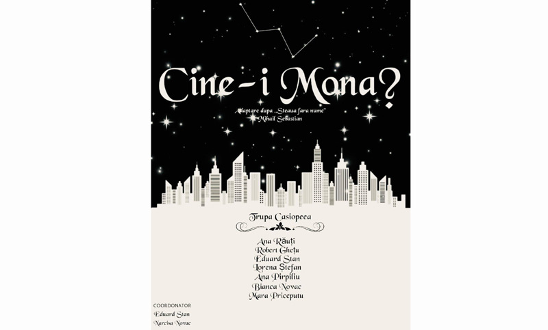Astăzi,18 octombrie, de la ora 18.00, la Sala “Bujor Macrin” (Sala Studio), brăilenii sunt invitați la un eveniment special: spectacolul “Cine-i Mona?”, o adaptare după “Steaua fără nume” de Mihail Sebastian, realizată de Eduard Stan, un tânăr actor, elev la Colegiul Național “Nicolae Iorga”. Spectacolul a fost premiat în cadrul Festivalului de Teatru pentru copii și adolescenți “Bujor Macrin”, ediția 2022.