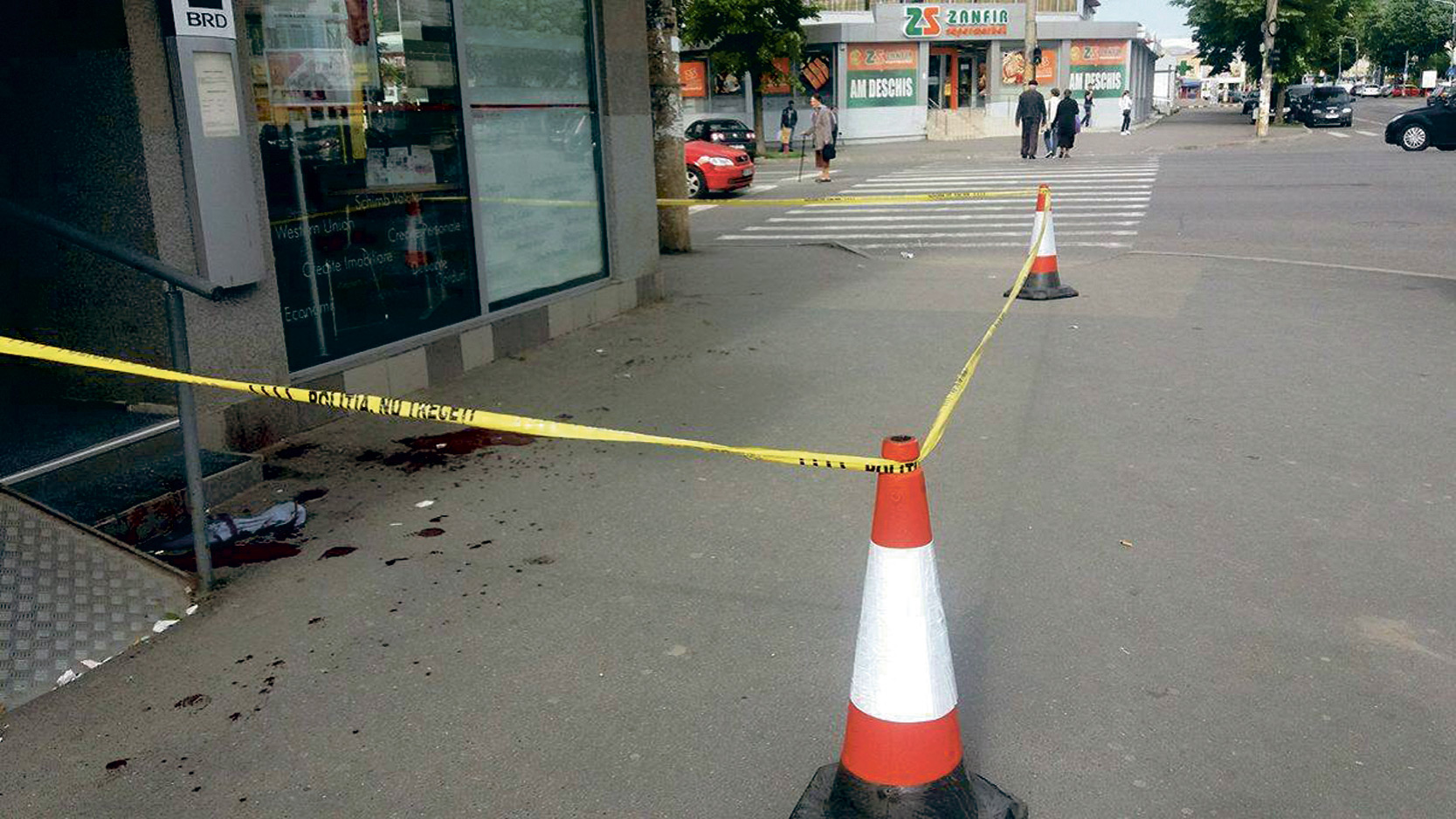 După ce a fost sesizată poliţia, iar victima a fost transportată la UPU, pentru îngrijiri medicale, oamenii legii au efectuat cercetarea la faţa locului, constatându-se că, după agresiune, şeful de sală de la agenţia de pariuri sportive ştersese o parte din petele de sânge care proveneau de la victimă. Pete de sânge (de fapt, o dâră mare de sânge!) au fost găsite de la uşa agenţiei de pariuri şi până la Banca Transilvania şi mai departe, până în faţa agenţiei BRD. În faţa BRD, unde s-a oprit victima, au fost identificate, două pete mari de sânge.