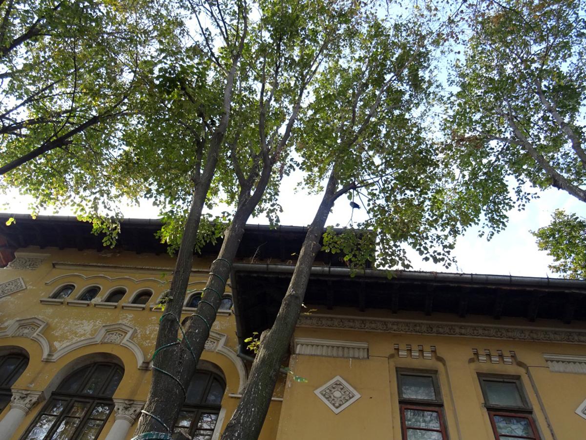 • problema este cauzată de sutele de ciori care şi-au făcut cuib în copacii de lângă instituţia de învăţământ situată pe strada Gral. Eremia Grigorescu • consilierul municipal independent Lucian Căprariu a semnalat situaţia autorităţilor locale, solicitând ca Seroplant să intervină pentru toaletarea copacilor respectivi, pentru ca păsările să plece în altă parte • deocamdată, nu s-a luat nicio măsură în acest sens, autorităţile fiind de părere că tăierea unor crengi nu ar rezolva eficient problema • în afară de faptul că îndepărtează periodic găinaţul de pe trotuar, Primăria nu vede cum ar putea interveni în această situaţie • combaterea ciorilor cu ajutorul vânătorilor, cum se făcea pe vremuri, nu mai este permisă de legile în vigoare