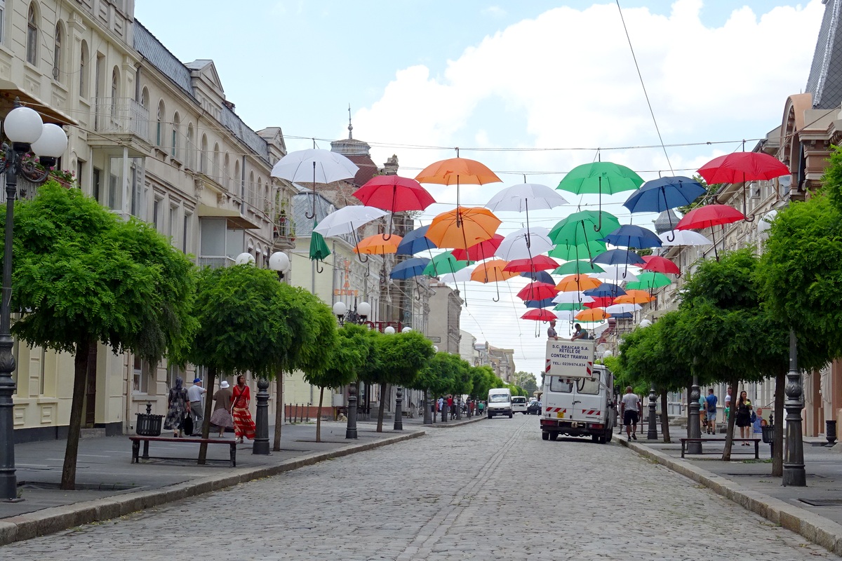Moda umbrelelor agățate deasupra unor străzi pietonale, prezentă de câțiva ani prin multe orașe “cu ștaif” de prin Europa și chiar din România, a prins viață, mai nou, și la Brăila. La fel ca Timișoara sau Alba Iulia, orașul nostru va avea un “curcubeu de umbrele” pe o stradă din zona centrală. Este vorba despre Str. Mihai Eminescu, fosta Regală, unde Primăria a început, de ieri, să monteze umbrelele viu colorate. Deocamdată, a fost pregătit terenul, prin amplasarea unei plase din sfoară pentru suport, doar pe porțiunea cuprinsă între Piața Traian și Str. Ana Aslan. Responsabili din cadrul Primăriei ne-au informat, însă, că acoperișul de umbrele va fi întins până la intersecția cu bulevardul Cuza. Operațiunea face parte din pregătirile pentru Zilele Brăilei, care în 2018, când aniversăm 650 de ani de la prima atestare documentară a orașului, se anunță a fi mai bogate în evenimente decât de obicei. Strada Mihai Eminescu va găzdui, începând cu 8 august, când se va deschide tradiționalul târg al anticarilor, și până pe 15 august, tot felul de evenimente: dansuri tradiționale, ateliere de creație etc. În plus, fosta Regală va continua să fie în centrul atenției și după Zilele Brăilei. Astfel, la finalul lunii august, pe această arteră pietonală se va organiza un Târg al Dulciurilor, manifestare aflată la prima ediție, iar la începutul lunii septembrie, tot aici va avea loc Târgul de Carte. Pentru aceste două evenimente, Primăria va amplasa pe Str. Mihai Eminescu căsuțele de lemn recent achiziționate de municipalitate.