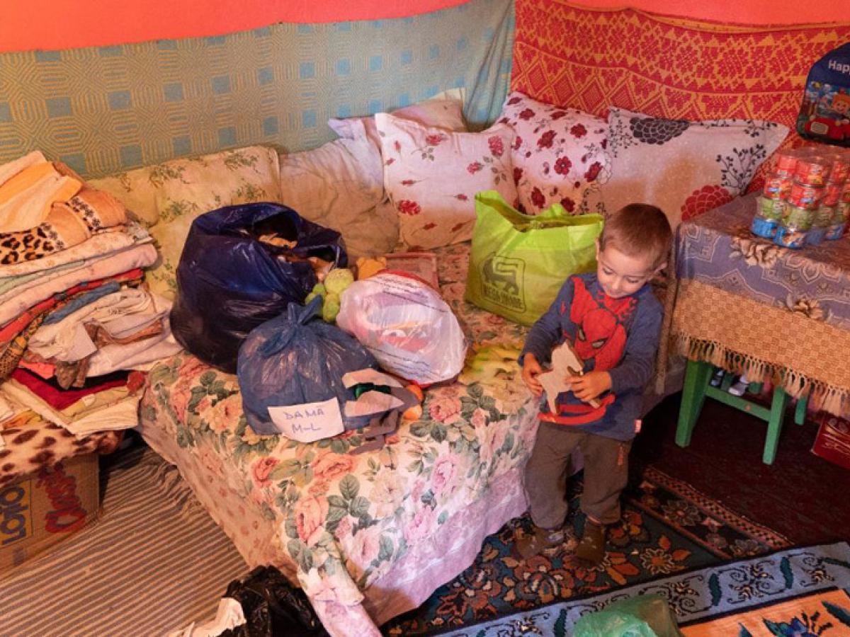 De la primele ore ale dimineţii, trei camioane pline cu ajutoare au traversat Dunărea pe la Brăila pentru a ajunge la cele patru comunităţi din insulă. Prima oprire a fost în localitatea Măraşu, la o familie cu 8 copii. Bucuria voluntarilor a fost mare la întâlnirea acestor frumoşi copii veniţi de la şcoală pentru a primi darurile aduse cu drag la ei acasă.