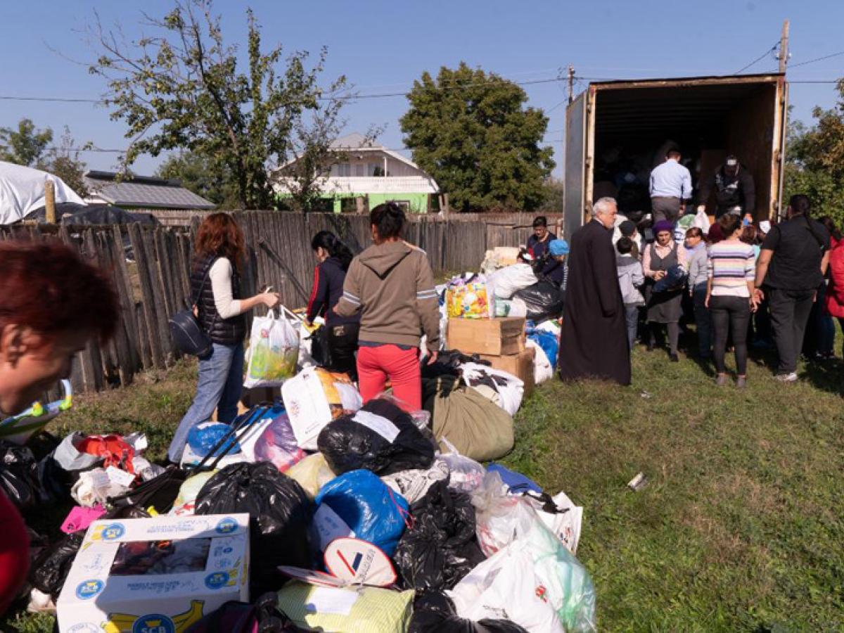 În continuare, la biserica parohială ajutoarele au fost descărcate, sortate şi pregătite pentru a fi oferite celorlalte familii nevoiaşe din cele patru localităţi.