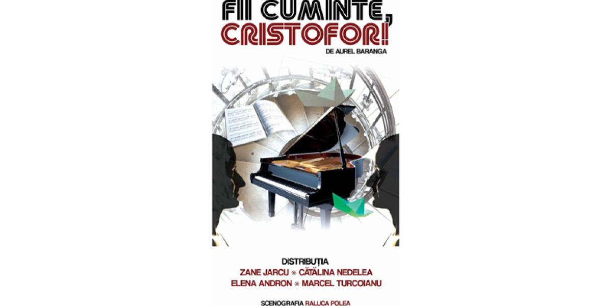 Evenimentele teatrale extraordinare continuă și în această săptămână, iar Teatrul “Maria Filotti” anunță o nouă premieră: “Fii cuminte, Cristofor!”. Piesa lui Aurel Baranga este regizată de Marcel Turcoianu, actor de peste 25 ani al teatrului brăilean. Avanpremiera și premiera spectacolului au loc vineri și sâmbătă, pe 6 și 7 mai, de la ora 18.00, la Sala Studio, iar în spectacol joacă actorii Zane Jarcu, Cătălina Nedelea, Elena Andron și Marcel Turcoianu. Scenografia spectacolului este realizată de Raluca Polea.