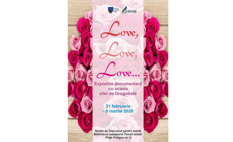Cu ocazia zilei de 24 februarie, când “Dragobetele sărută fetele!”, la Biblioteca Judeţeană “Panait Istrati”, la parterul Secţiei de Împrumut pentru Adulţi s-a deschis expoziţia documentară “Love, love, love...”