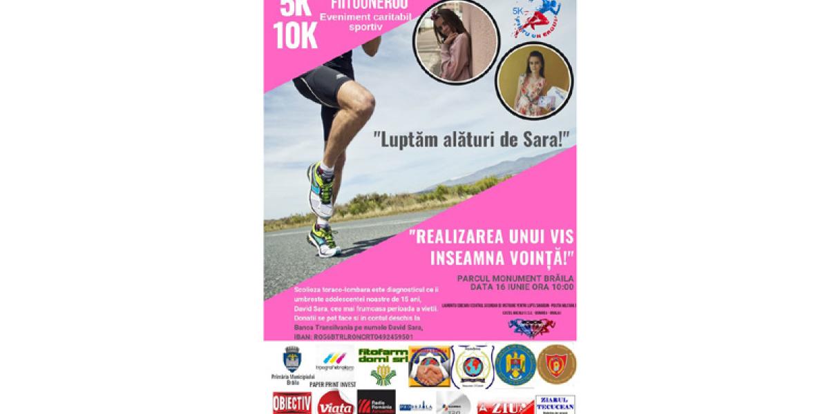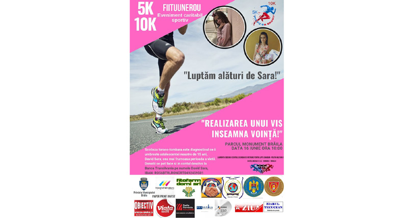 “Realizarea unui vis înseamna voinţă! Voinţa este elementul de care avem nevoie să «Luptăm alături de Sara!», duminică, 16 iunie, în Parcul Monument din Brăila, începând cu ora 10.00”. Acesta este îndemnul alergătorilor Laurenţiu Cobzaru şi Costel Mazâlu pentru brăileni, cei doi organizând un nou cros caritabil pentru a veni în ajutorul copiilor care se confruntă cu probleme grave de sănătate.