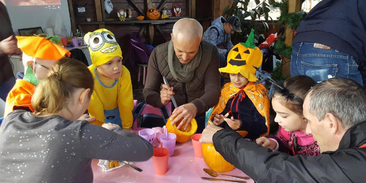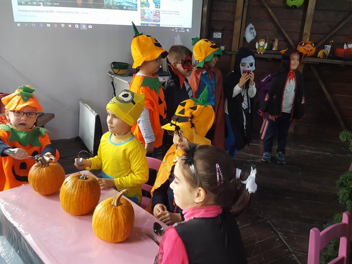 Cei mici au dat startul distracţiei încă de vineri, aceştia venind să vadă decorul tematic creat de echipa parcului, dar şi nerăbdători să îşi demonstreze măiestria în sculptură. Sute de dovleci au fost pregătiţi să fie “transformaţi” în decoraţiuni de Halloween, copiii lucrând cu entuziasm astfel încât să rezulte cei mai “înfricoşători” bostani. Iar cum tradiţia spune că de Halloween copiii primesc dulciuri, cei mici au fost răsplătiţi cu bomboane şi fructe.