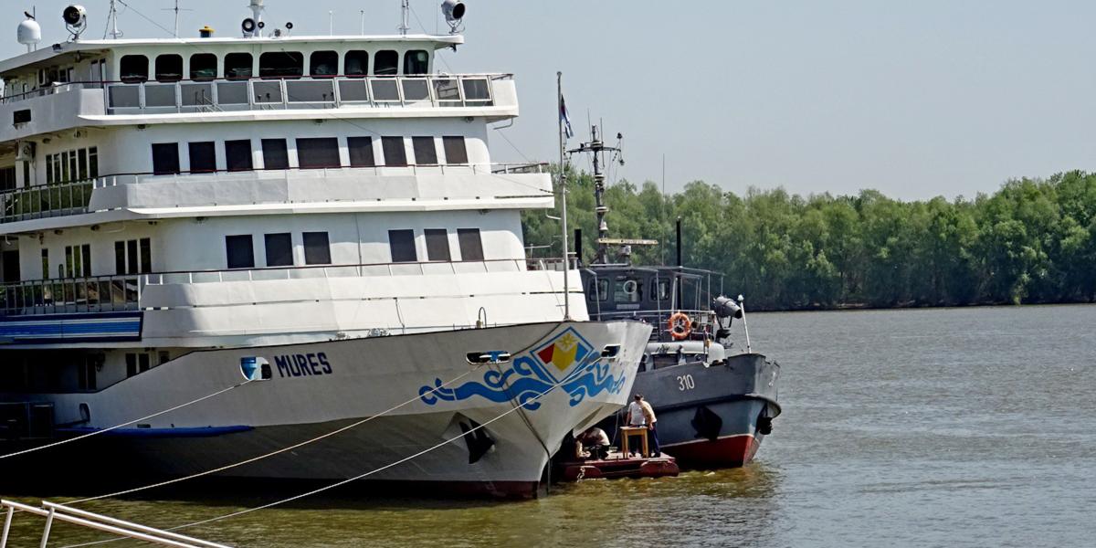 În rest, cu foarte mici excepţii, tot ce se află pe nava “Mureş” este original. Mobilierul, tapetul, carpetele sunt cele cu care vasul de croazieră a fost lansat la apă, în 1986, din şantierul naval Olteniţa. Doar câteva televizoare de ultimă generaţie şi aparate de aer condiţionat plasate discret în saloanele de lucru sunt dovezi ale trecerii anilor.