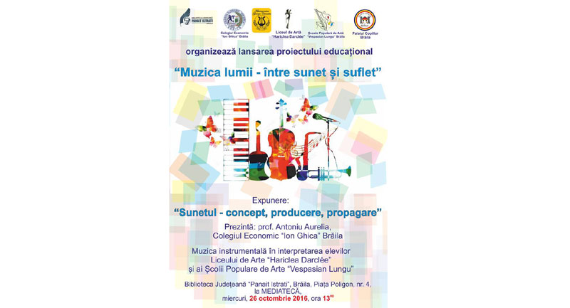 “Panait Istrati” are loc Spectacolul muzical instrumental susţinut de elevii Liceului de Artă “Hariclea Darclee” şi ai Şcolii Populare de Arte “Vespasian Lungu” Brăila. De asemenea, în cadrul acestui eveniment cultural, prof. Aurelia Antoniu va prezenta expunerea “Sunetul - concept, producere, propagare.”