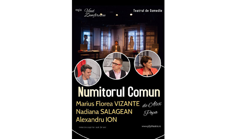 Joi, 7 februarie 2019, de la ora 18.00, la Sala Mare a Teatrului “Maria Filotti” se joacă spectacolul “NUMITORUL COMUN” de Alexandru Popa, regia Vlad Zamfirescu. O producţie a Teatrului de COMEDIE – Bucureşti, piesa are o distribuţie de excepţie: Marius Florea Vizante, Nadiana Sălăgean, Alexandru Ion,