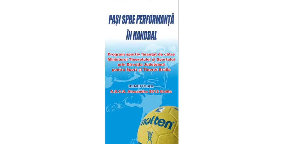 Un nou proiect care vizează atragerea copiilor din municipiul şi judeţul Brăila spre handbal, “Paşi spre performanţă în handbal”, este deja în derulare. Proiectul clubului “Alexandru 2012’” Brăila se desfăşoară în perioada 16 septembrie - 17 noiembrie 2019 şi este finanţat de către Ministerul Tineretului şi Sportului, prin Direcţia Judeţeană pentru Sport şi Tineret Brăila. Cu acest prilej clubul brăilean încearcă să mărească aria de selecţie a copiilor de gimnaziu, băieţi şi fete, cu vârste între 11 şi 14 ani, atât din mediul rural cât şi din cel urban care vor să practice jocul de handbal.