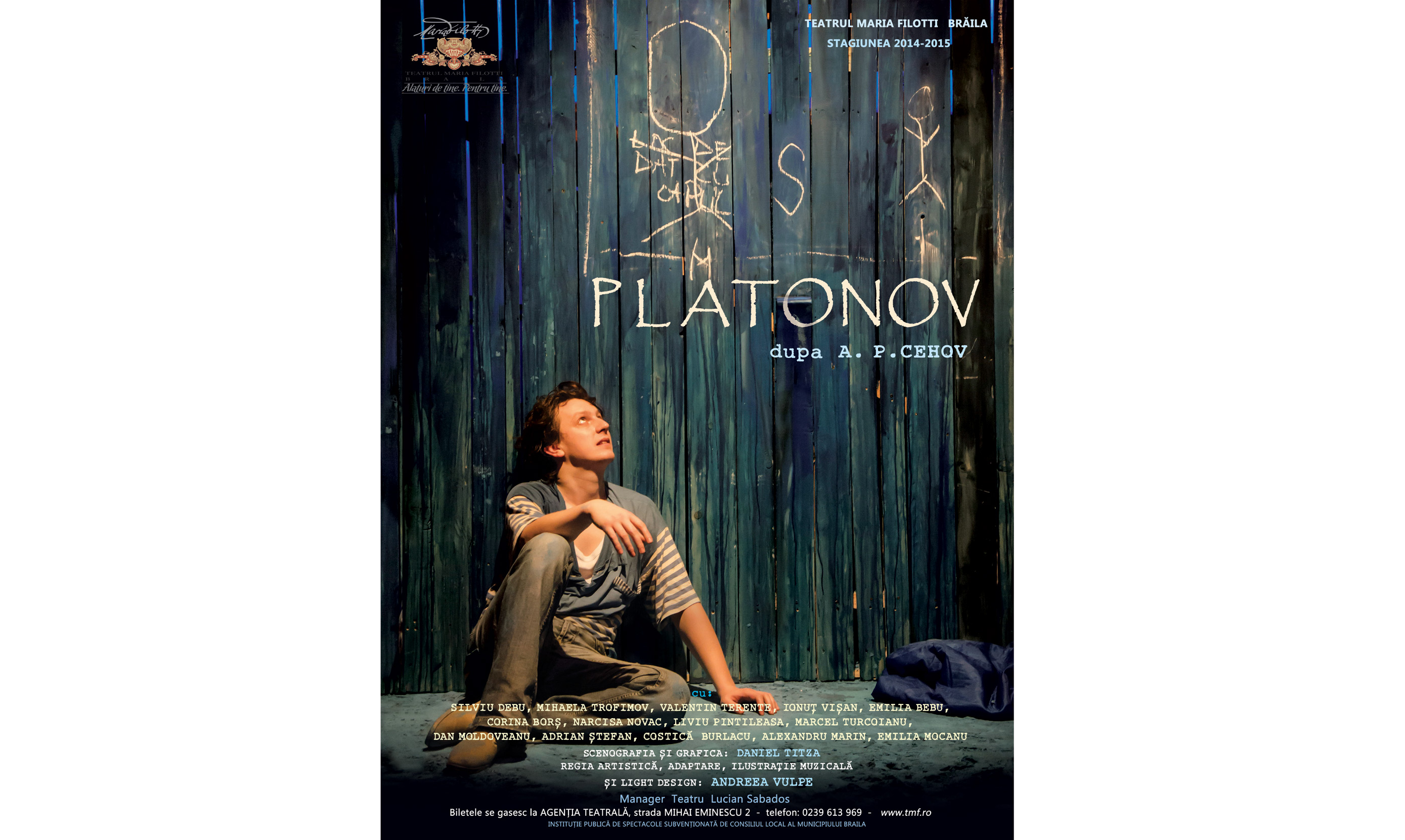 Teatrul Maria Filotti vă invită să revedeţi spectacolului “Platonov”, vineri, 24 noiembrie, orele 18.00, pe scena Sălii Bujor Macrin. Piesa este o poveste tulburătoare, comică şi sarcastică pe alocuri, dramatică şi chiar tragică, ce evocă o constantă umană şi caractere general umane ce dau textului un sentiment de actualitate neforţată. Distribuţia de excepţie este alcătuită din: Silviu Debu, Mihaela Trofimov, Valentin Terente, Emilia Bebu, Ionuţ Vişan, Liviu Pintileasa, Corina Borş, Narcisa Novac, Marcel Turcoianu, Dan Moldoveanu, Adrian Ştefan, Costică Burlacu, Emilia Mocanu şi Alexandru Marin.