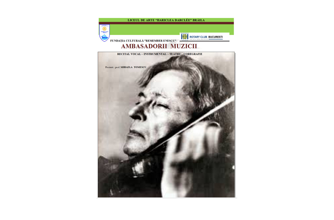 În weekend, Liceul de Arte “H. Darclee” a organizat un spectacol de înaltă ţinută artistică, un recital vocal-instrumental-teatru-coregrafie la care au participat elevii din clasele primare, gimnaziu şi liceu. Evenimentul s-a desfăşurat sub egida Fundaţiei Culturale “Remember Enescu” - Ambasadorii Muzicii, în parteneriat cu Rotary Club, invitat de onoare fiind Mădălina Dănilă, fostă elevă a liceului şi remarcată pianistă, doctorand UMMB.