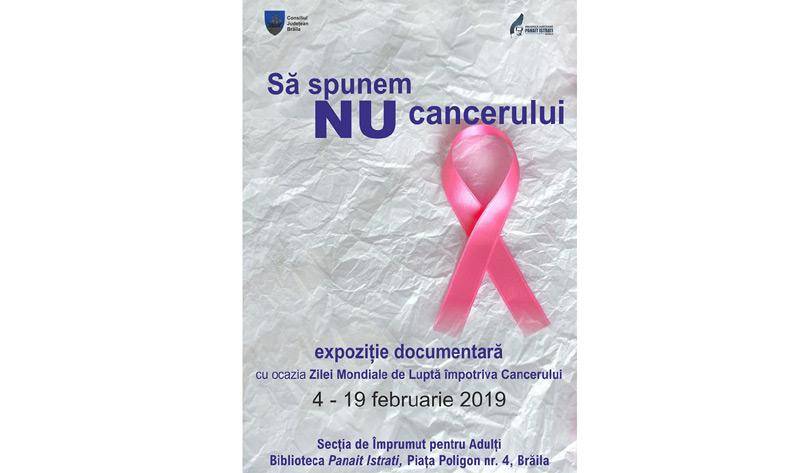 Cu acest prilej, Biblioteca Judeţeană “Panait Istrati” Brăila organizează expoziţia documentară “Să spunem NU cancerului”, care cuprinde o serie de lucrări de specialitate aflate în colecţiile bibliotecii şi care sunt expuse în vitrine pentru publicul interesat.