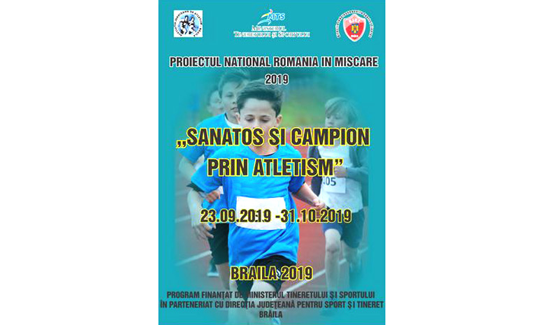 Asociaţia Judeţeană de Atletism Brăila va desfăşura proiectul sportiv “Sănătos şi campion prin atletism”, eveniment cuprins în Programul Naţional “România în mişcare”, care este finanţat de Ministerul Tineretului şi Sportului prin Direcţia Judeţeană pentru Sport şi Tineret Brăila.