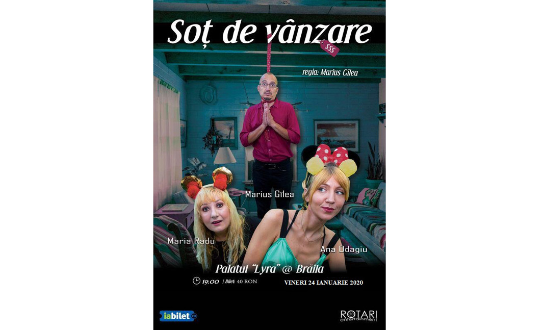 se va juca “Soţ de vânzare”, piesa de teatru după Mihail Zadornov, regia Marius Gilea. În distribuţie: Maria Radu, Ana Odagiu, Marius Gilea.