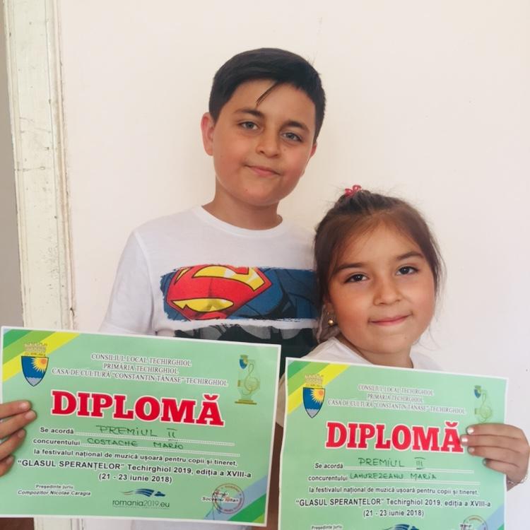 La categoria 6 ani, Maria Lacurezeanu a obținut Premiul al lll-lea, iar la categoria 10 ani, Mario Costache a luat Premiul al ll-lea.