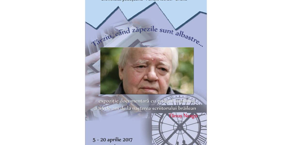 • expoziţie documentară care marchează 85 de ani de la naşterea scriitorului brăilean Fănuş Neagu
