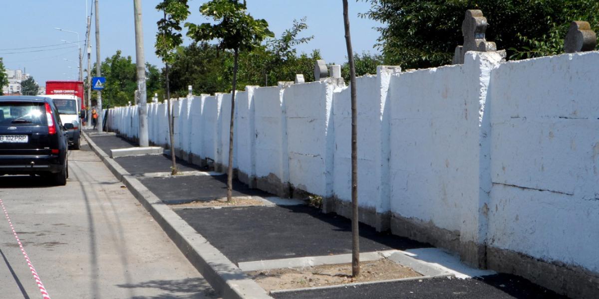 • o lucrare de asfaltare executată de SUPAGL a stârnit numeroase ironii pe mediile de socializare • internauţii au râs de acea fâşie de trotuar întreruptă la fiecare câţiva metri de spaţii verzi ce ocupă aproape toată lăţimea spaţiului pietonal • “cei care merg pe aici trebuie să ţopăie ca iepurii”, este părerea unui brăilean • în replică, conducerea SUPAGL spune că acela nu este un trotuar destinat pietonilor, ci doar o amenajare destinată să pună în valoare mai bine panourile cu imagini de epocă ce urmează să fie postate pe gardul cimitirului