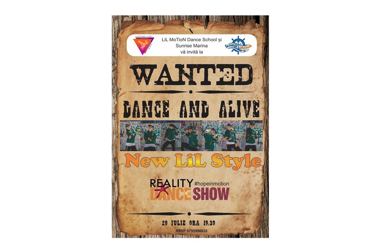 Evenimentul “Wanted Dance and Alive” are loc la Sunrise Marina în data de 20 iulie, ora 19:30. Ajutați-i să-și îndeplinească visul!