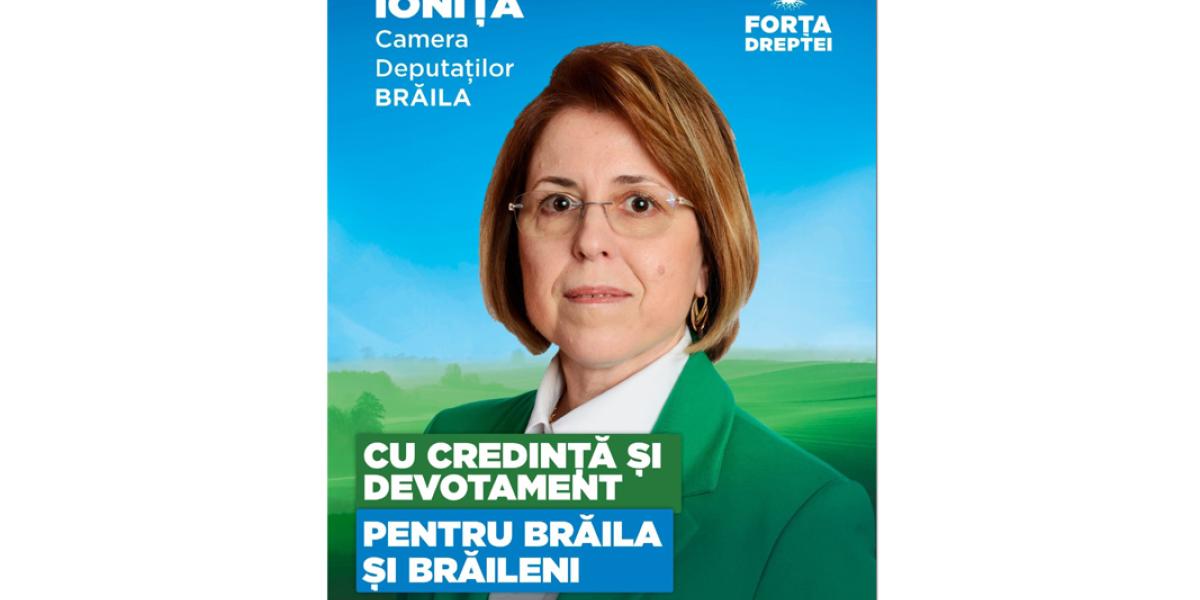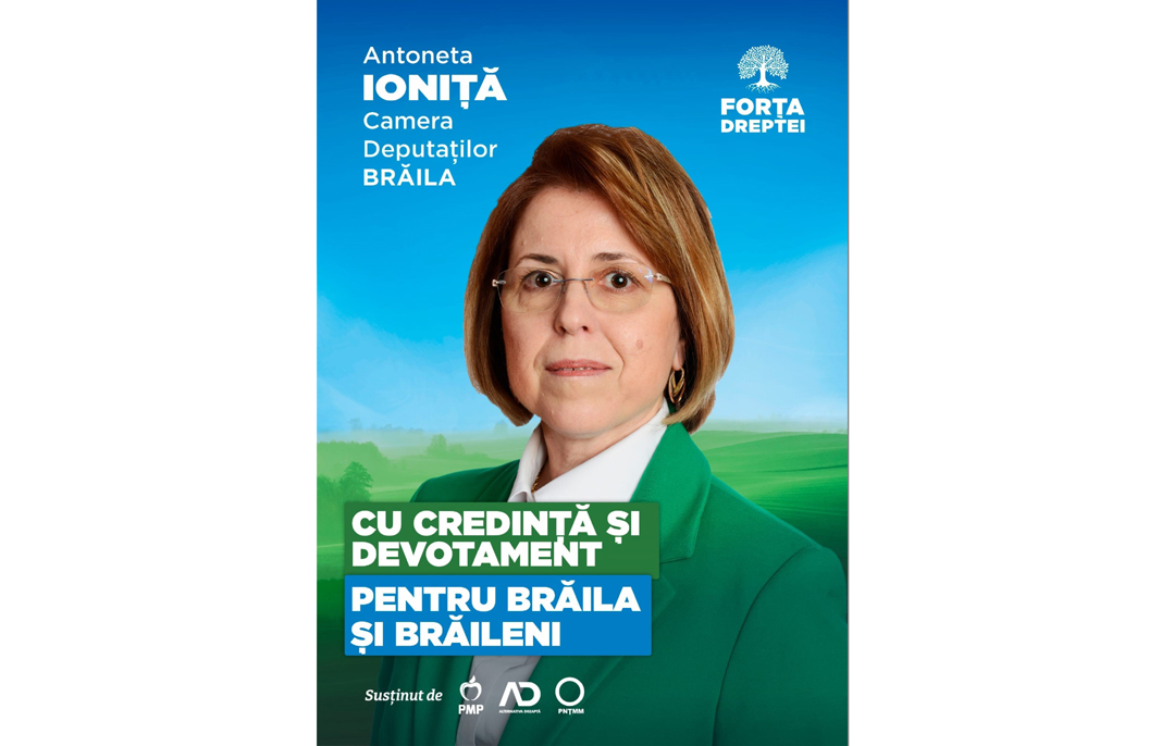 ”Candidez pentru un mandat de deputat, funcție pe care am mai deținut-o în perioada 2016-2020. Sunt medic și am performat în activitatea politică, fiind unul dintre cei mai eficienți membri din comisia pentru sănătate”, declară Antoneta Ioniță, liderul Forța Dreptei Brăila. Sursa citată susține că după terminarea mandatului, a continuat să monitorizeze cu atenție politicile propuse pentru sănătatea românilor: ”Am constatat că România a pierdut peste 700 de milioane de euro, bani din PNRR destinați investiției în unități spitalicești. Ca medic nu pot asista nepăsătoare la suferința oamenilor, la lipsa medicamentelor esențiale din farmacii și din spitale, la lipsa cadrelor medicale, la dificultatea cu care îți poți face o programare la investigații imagistice și de laborator, la accesibilitatea pacienților la consultațiile medicilor specialiști”.