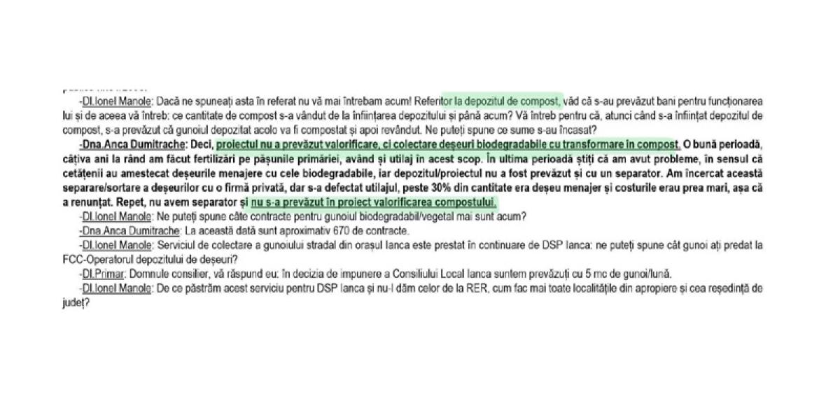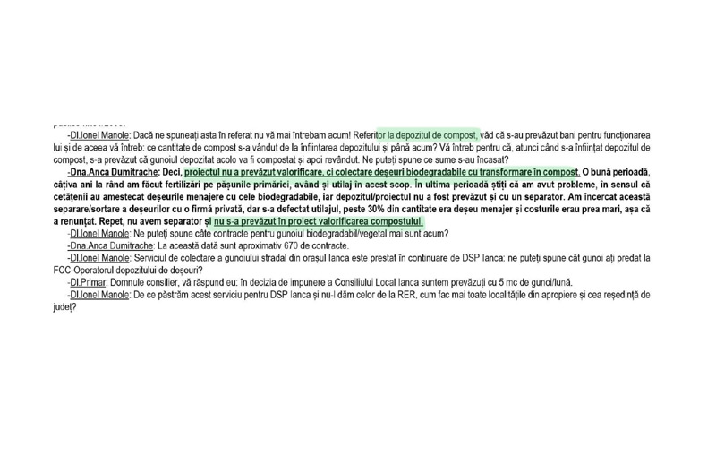 În aceste condiții, Boboc întreabă: ”Domnule Chiriţă, ce s-a întâmplat în toţi aceşti ani cu îngrăşământul agricol obţinut în staţia de compostare Ianca (5.000 tone de compost/ciclu de producţie de 6 luni), ale cui terenuri au fost fertilizate şi în buzunarele cui a intrat profitul?”