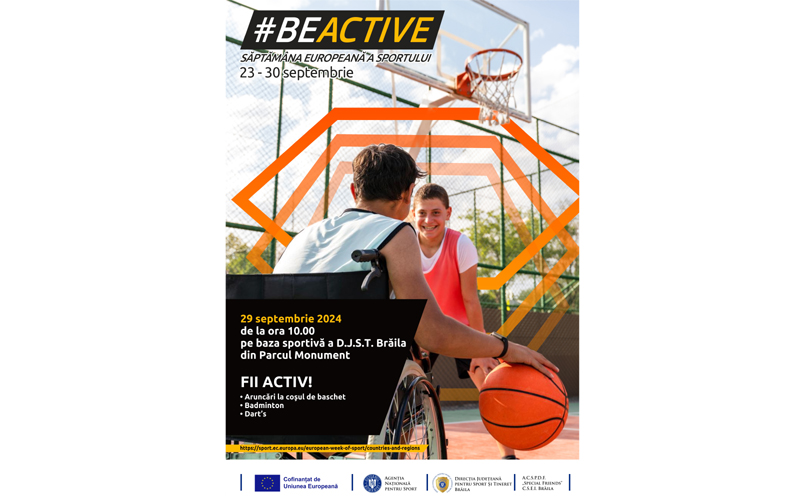 “Participanții vor desfășura activități sportive cu caracter paralimpic: aruncări la coșul de baschet, badminton și darts. Proiectul # BeActive! – Săptămâna Europeană a Sportului, are ca obiectiv conștientizarea importanței unui stil de viață activ în România, fiind coordonat de către Agenția Națională pentru Sport. Pe plan local, DJS Brăila susține financiar, material, logistic, asigură premierea sportivilor și pune la dispoziție accesul gratuit la baza sportivă proprie din Parcul Monument. Alături de sportivii paralimpici, vor fi și elevi ai Centrului Școlar de Educație Incluzivă (C.S.E.I.) Brăila.