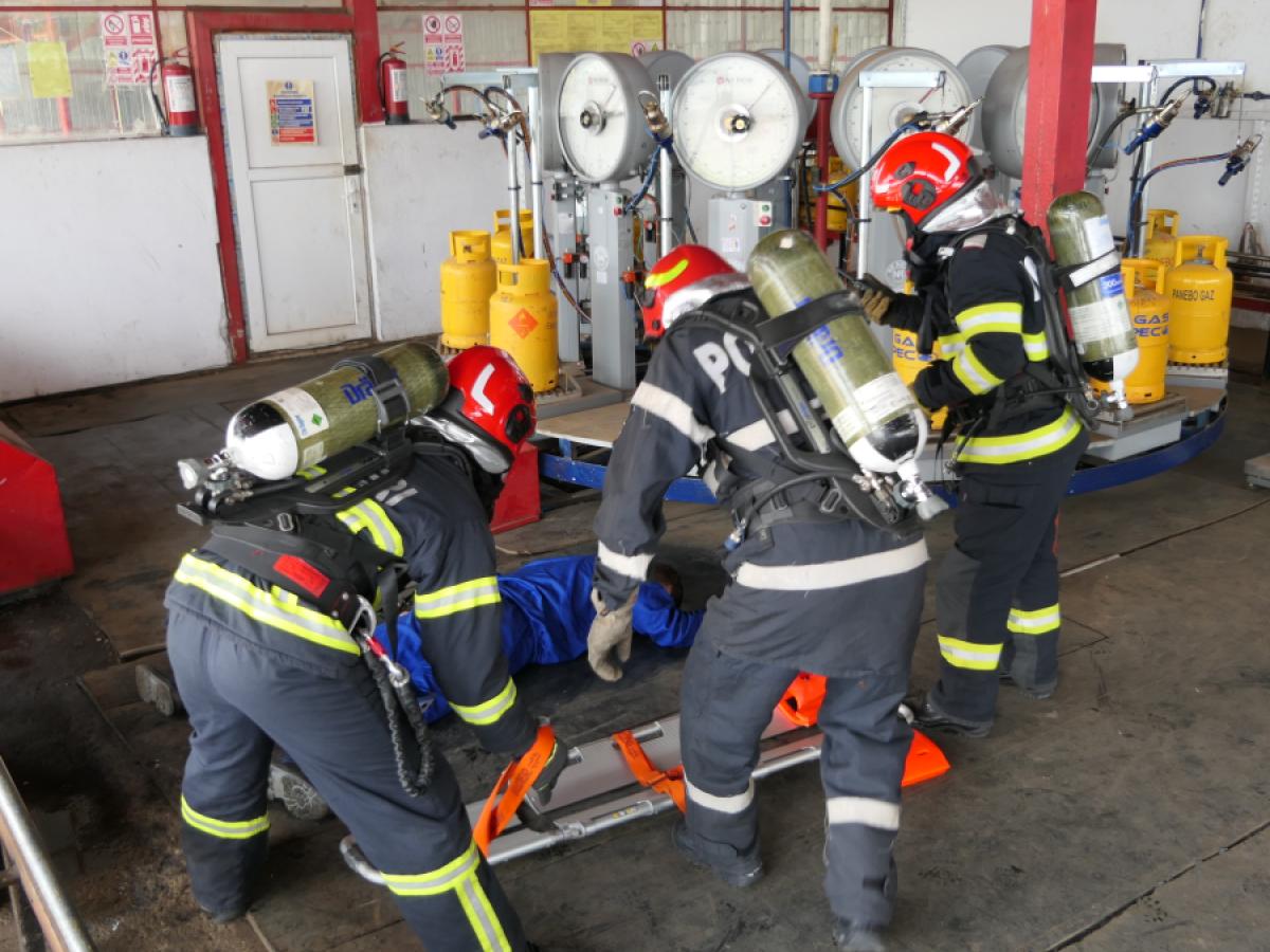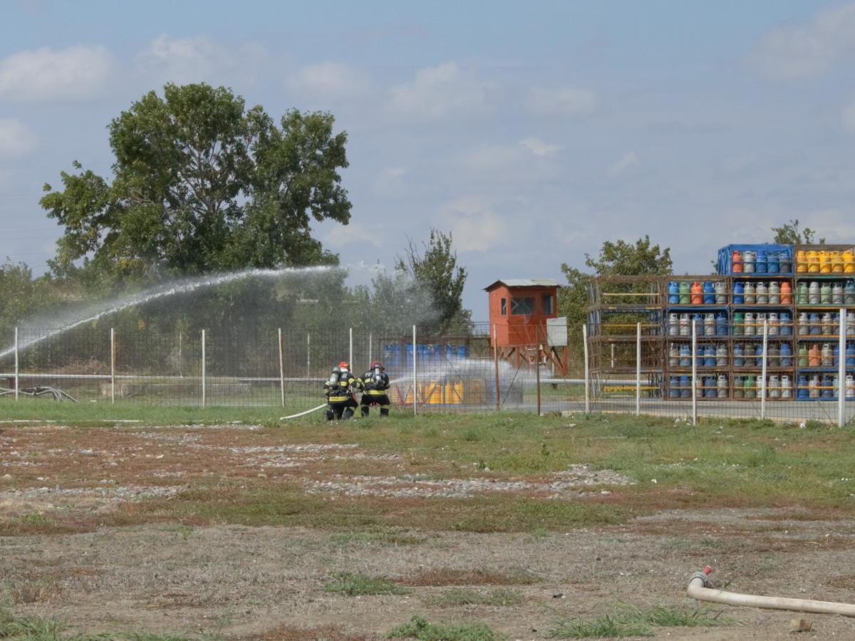 Exerciţiul tactic a fost structurat în două situaţii: limitarea și lichidarea unui incendiu, în urma unei explozii, la hala de încărcare butelii din cadrul operatorului economic, cu posibilitate de extindere la vasele stocatoare de GPL aflate în apropiere, căutarea-salvarea a trei muncitori surprinși în interior, descarcerarea a doi conducători auto, rămași captivi ca urmare a producerii unui accident auto, cu implicarea a două autoturisme, provocat de vizibilitatea redusă din zonă.