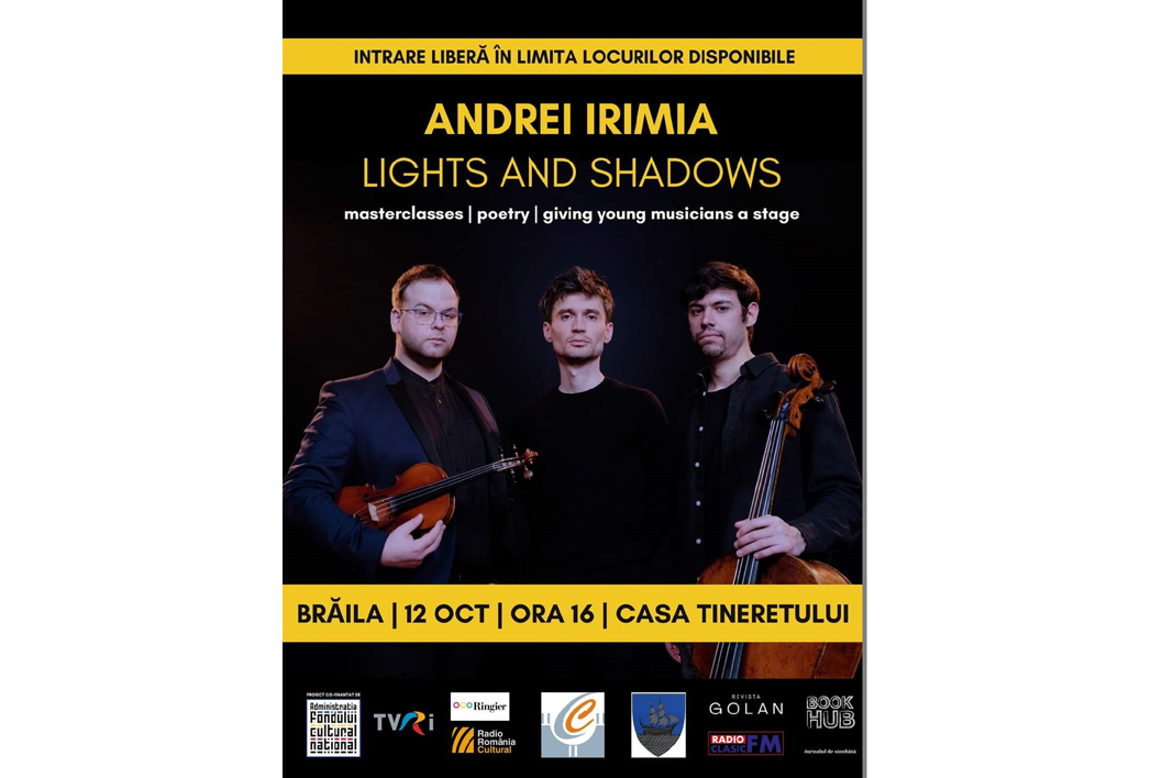 Proiectul muzical ”Lights and Shadows”, cofinanțat de Administrația Fondului cultural național și adresat publicului iubitor de muzică neoclasică, este susținut de pianistul și compozitorul Andrei Irimia, alături de violonistul Răzvan Păun și de violoncelistul Thibault Solorzano și va cuprinde totodată și lecții de masterclass, recitaluri extraordinare de muzică și poezie, parte dintr-un turneu special, un proiect și un eveniment în care publicului îi este propus un concept inedit, acela de a audia partituri clasice, în versiuni pentru vioară, violoncel și pian.