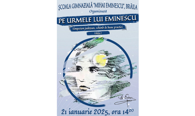 • marți, 21 ianuarie 2025, Școala Gimnazială „Mihai Eminescu” din Brăila a fost gazda Simpozionul Județean - Schimbul de bune practici „Pe urmele lui Eminescu” • cadrele didactice din învățământul primar și elevii claselor a III-a și a IV-a au avut parte de o experiență educativă valoroasă, reușindu-se sensibilizarea micilor școlari față de opera marelui poet, privit ca un simbol al identității naționale și al valorilor culturale românești