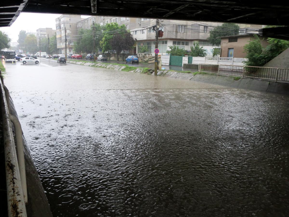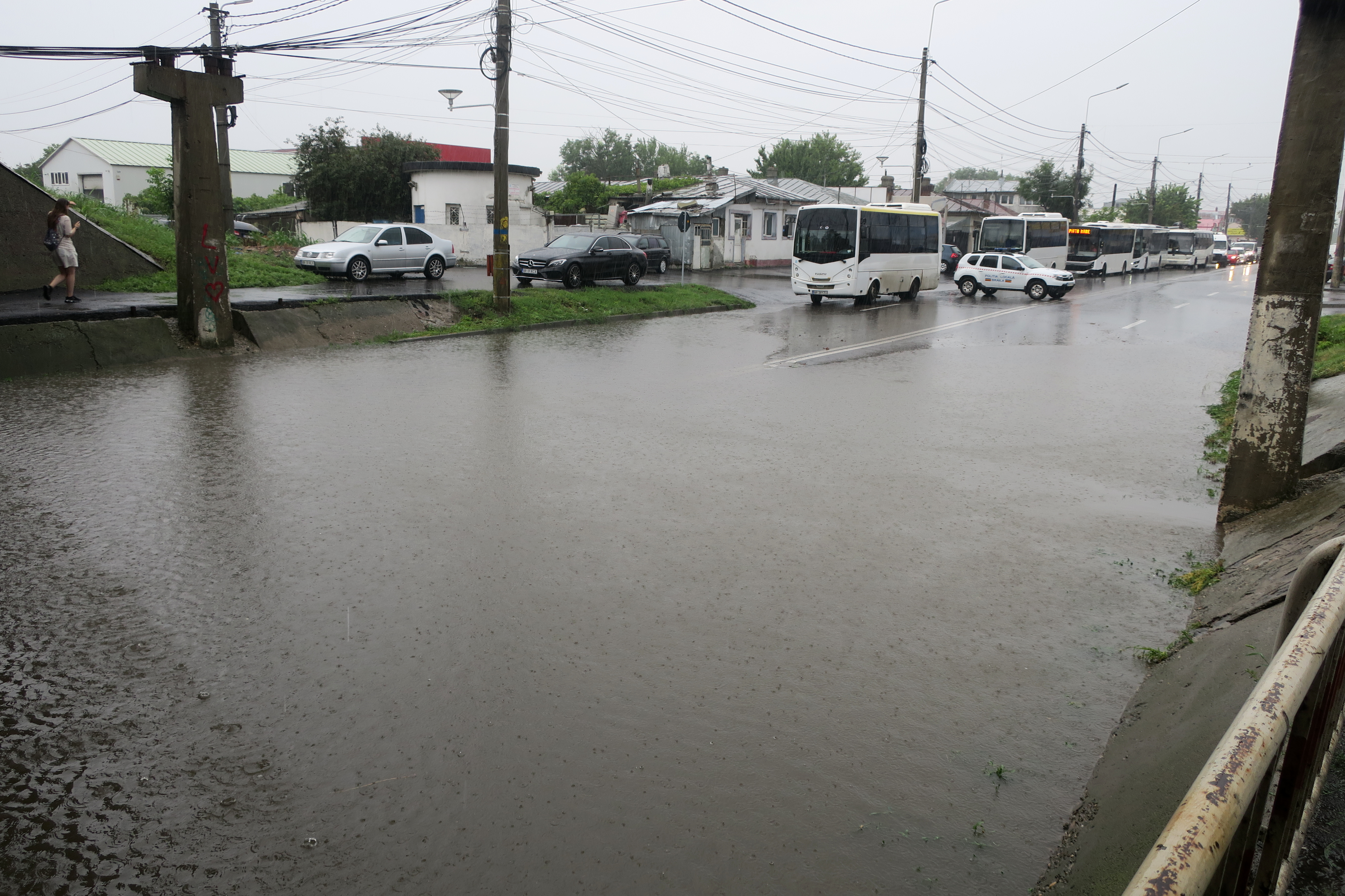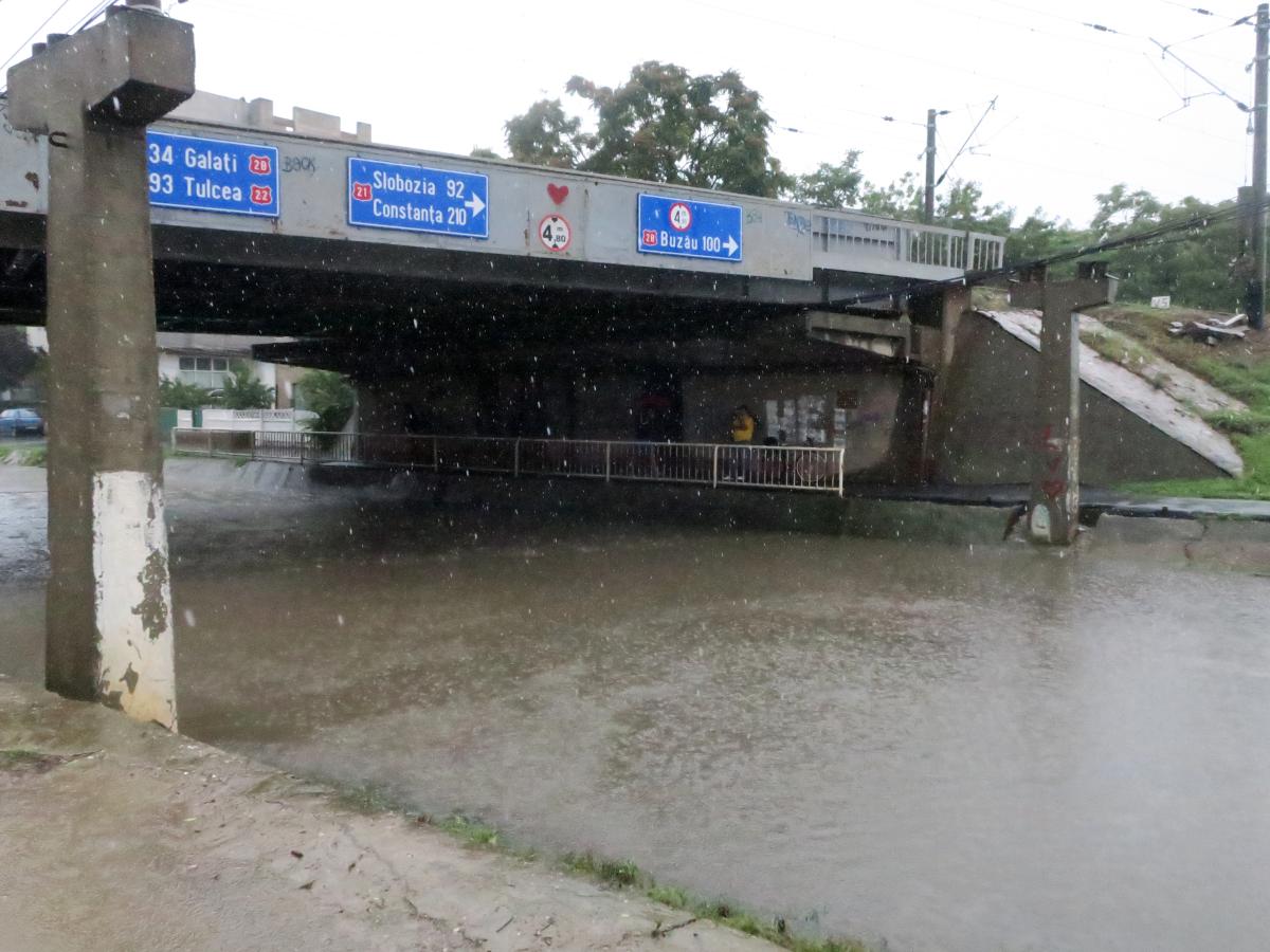 La fel cum se întâmplă după fiecare ploaie mai serioasă, și de această dată s-a acumulat foarte multă apă sub podul de cale ferată de pe Șos. Râmnicu Sărat, din cauza canalizării care nu poate face față. Problema e că traficul a fost blocat complet pe această arteră rutieră importantă a municipiului, două mașini ale Poliției Locale fiind poziționate transversal pe fiecare sens de mers pentru a-i opri pe șoferii care ar fi riscat să se avânte în apa de peste jumătate de metru adâncime. Din această cauză, locuitorii cartierelor Chercea, Catanga, parțial Lacu Dulce sunt ”rupți” de restul municipiului, dat fiind că și Șos. Baldovinești este închisă, pentru o reabilitare începută din primăvară.