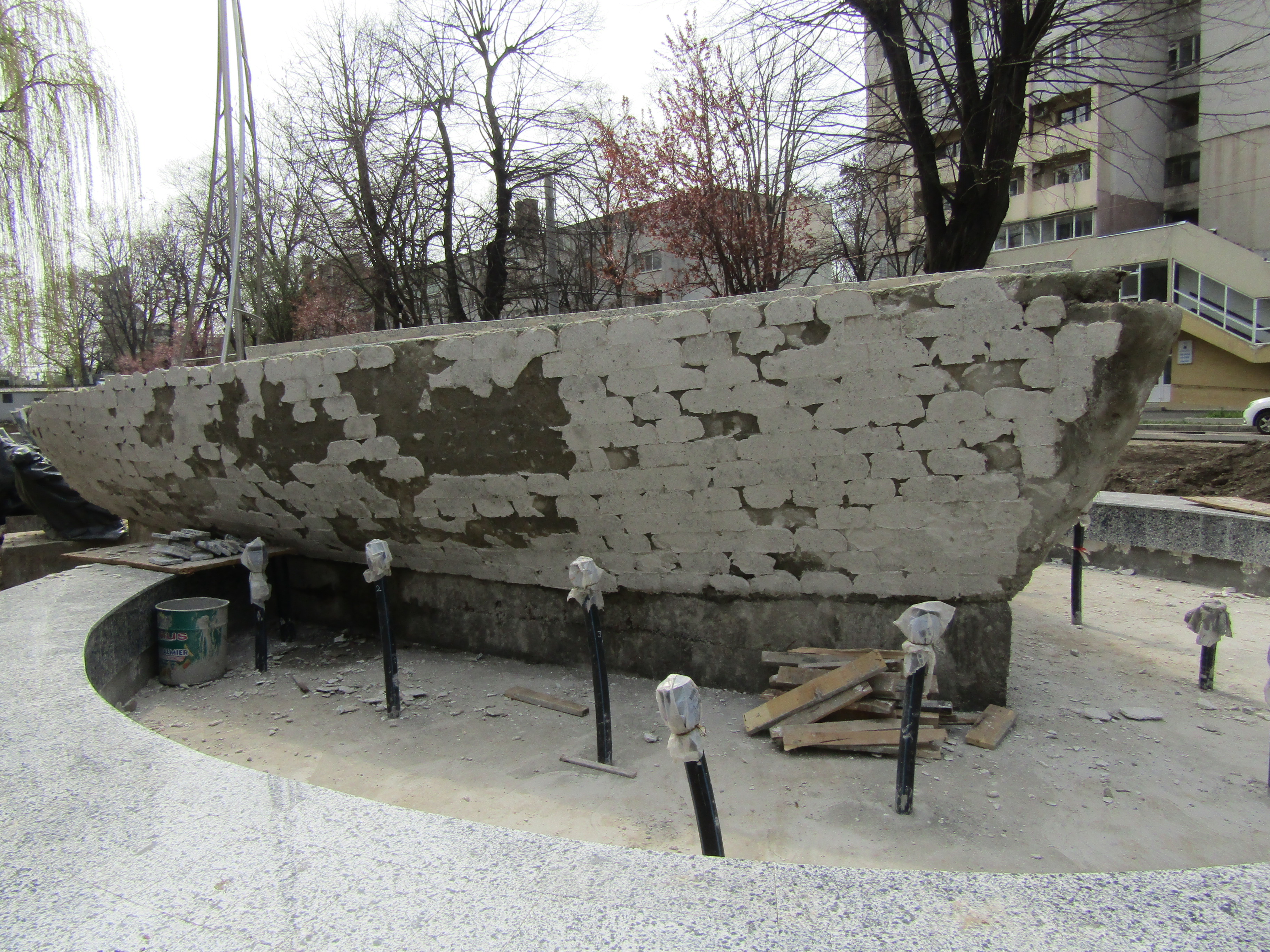 Istoria corăbiilor în lume a început cu simple trunchiuri de copaci scobite artizanal, pirogi etc, pentru ca mai apoi să fie construite din lemn sau metal. și cum Brăila nu a fost străină de bărcile folosite inclusiv la pescuit, iată că orașul de la Dunăre va avea o lucrare specifică zonei și unicat în țară. Și anume o corabie ingenios proiectată și amplasată pe Bdul. Independenței. Catargele din inox, impozante, locurile de odihnă, un joc de apă și lumini dar și granitul lustruit oglindă aplicat pe coca segmentată în două și foarte pretențioasă în execuție, bazinele de apă și ele impecabil realizate vor fi, cu siguranță, un punct de atracție pentru brăileni și turiști. Construcția este aproape gata, sau, mai bine zis, era aproape gata zilele trecute, când deja mai era un pic și se finaliza placarea cu granit a suprafeței exterioare. Numai că... surpriză: nici bine n-au terminat meșterii montarea granitului, că au început să dea jos plăcile, pentru a o lua de la zero. De ce această situație demnă de legenda meșterului Manole? De la fața locului, din discuțiile purtate cu cei găsiți pe șantier, am aflat că la placarea cu granit ar fi lucrat două echipe, una formată din meșteri veniți de la București, care ar avea deja experiența lucrului bine făcut la metroul din București, Catedrala Patriarhală sau Palatul Parlamentului. Ar mai fi fost, însă, și o altă echipă, cu meseriași mai fără experiență, care ar fi cam ”luat-o pe arătură” cu lucrarea... Cam așa sună explicațiile primite ”la prima mână” pe șantier, din surse neoficiale. Cert este că beneficiarul lucrării, adică Primăria, n-a fost mulțumit de felul cum se prezintă situația și i-a cerut constructorului să refacă placarea cu granit a corabiei de pe bulevard.