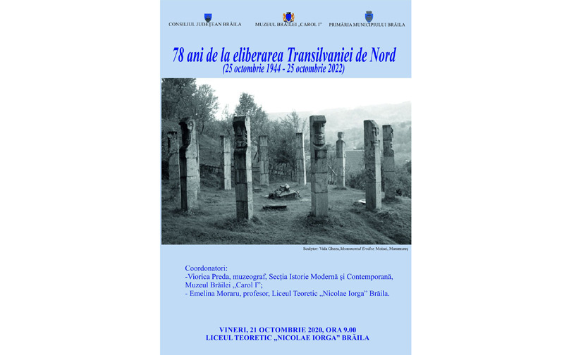 Astfel, Secția Istorie Modernă și Contemporană a Muzeului Brăilei „Carol I” organizează astăzi, 21 octombrie 2022, ora 9.00, la Liceul Teoretic „Nicolae Iorga” Brăila (Strada Campiniu), o dezbatere cu tema „78 de ani de la eliberarea Transilvaniei de Nord (25 octombrie 1944 - 25 octombrie 2022)”.