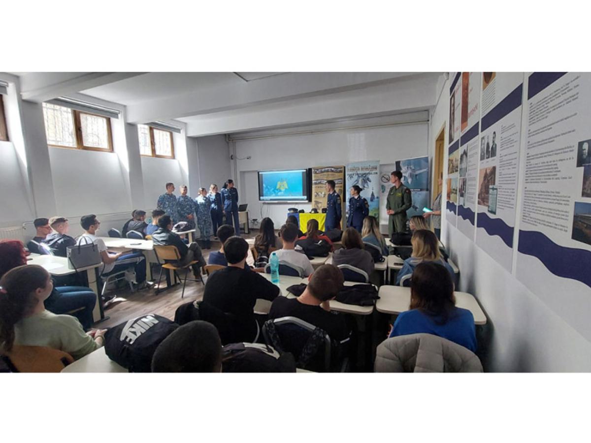• săptămâna trecută, studenții Academiei Forțelor Aeriene „Henri Coandă” și elevii Școlii Militare de Maiștri Militari și Subofițeri „Traian Vuia”, însoțiți de recrutorii Biroului Informare Recrutare de la CMJ Brăila, le-au explicat elevilor brăileni despre cariera militară și pașii care trebuie urmați pentru a deveni aviator