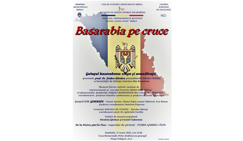 Casa de Cultură a Municipiului Brăila, în colaborare cu Societatea de Științe Istorice din România - Filiala Brăila, Asociația „ProBasarabia și Bucovina” - Filiala „Vasile Voloc” Brăila și Centrul Județean de Excelență Brăila, organizează sâmbătă, 17 iunie 2023, manifestarea cultural-artistică „Basarabia pe cruce”, pentru a comemora raptul teritorial rusesc de la 28 iunie 1940, precum și victimele deportărilor staliniste din anii ’40-’50 în Bărăgan și Siberia, informează, într-un comunicat, managerul Casei de Cultură, Emanoil Ciucașu. Evenimentul plin de semnificații și încărcătură emoțională se va desfășura la Casa Memorială „Petre Ștefănescu Goangă” (Piața Poligon), din Centrul Vechi, începând cu ora 11.30, cu participarea unei delegații culturale din orașul Cahul, Republica Moldova.