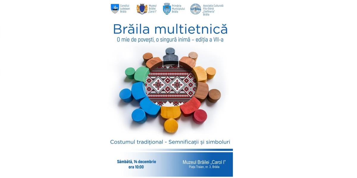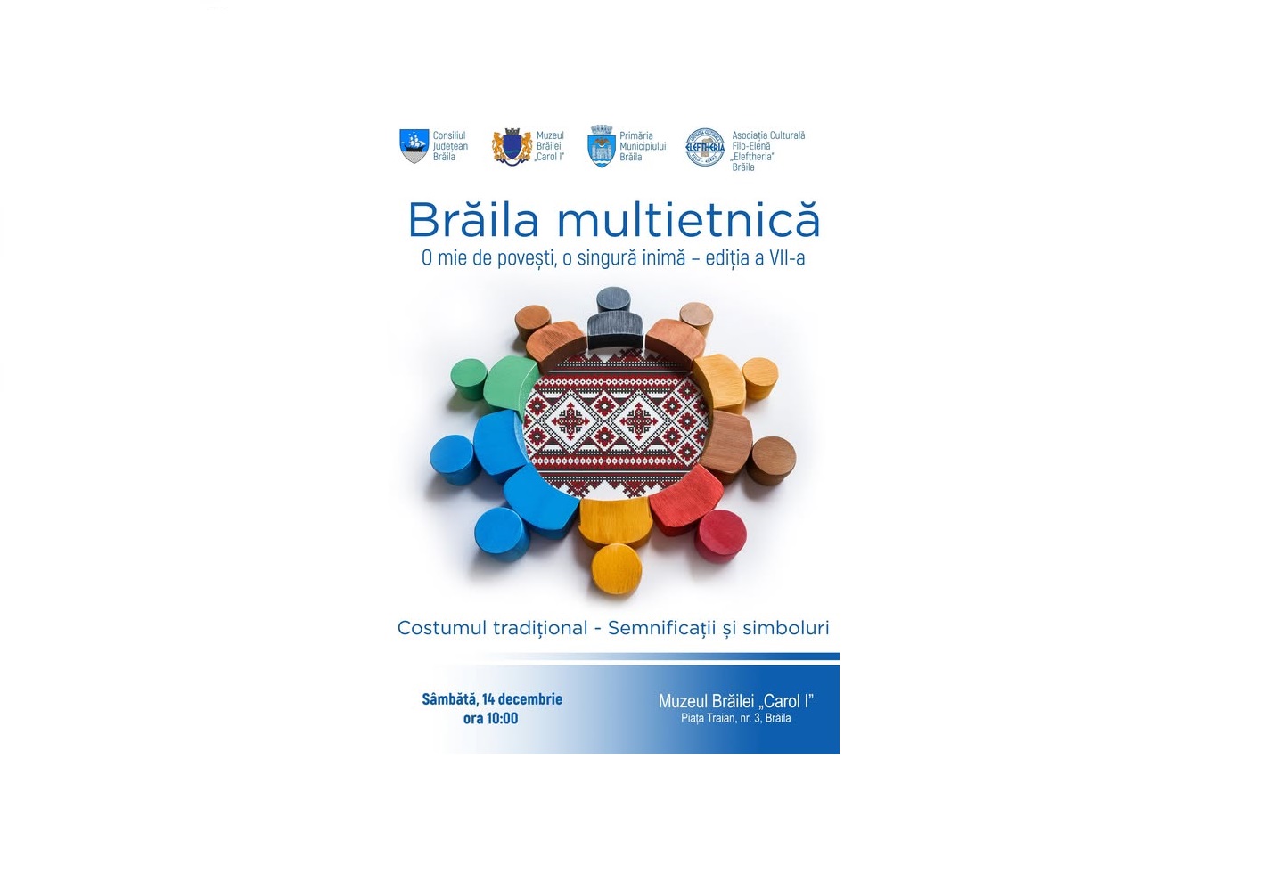 Sâmbătă, 14 decembrie, de la ora 10:00, la sediul central al Muzeului Brăilei „Carol I”, din Piața Traian nr. 3, va avea loc un eveniment deosebit de interesant, marca Asociația Culturală Filo-Elenă „Eleftheria” Brăila, așteptat de toate etniile brăilene și nu numai: „Brăila multietnică. O mie de povești, o singură inimă” - ediția a VII-a. Ediția de anul acesta, dedicată Zilei Minorităților Naționale, are ca temă: „Costumul tradițional - semnificații și simboluri”.